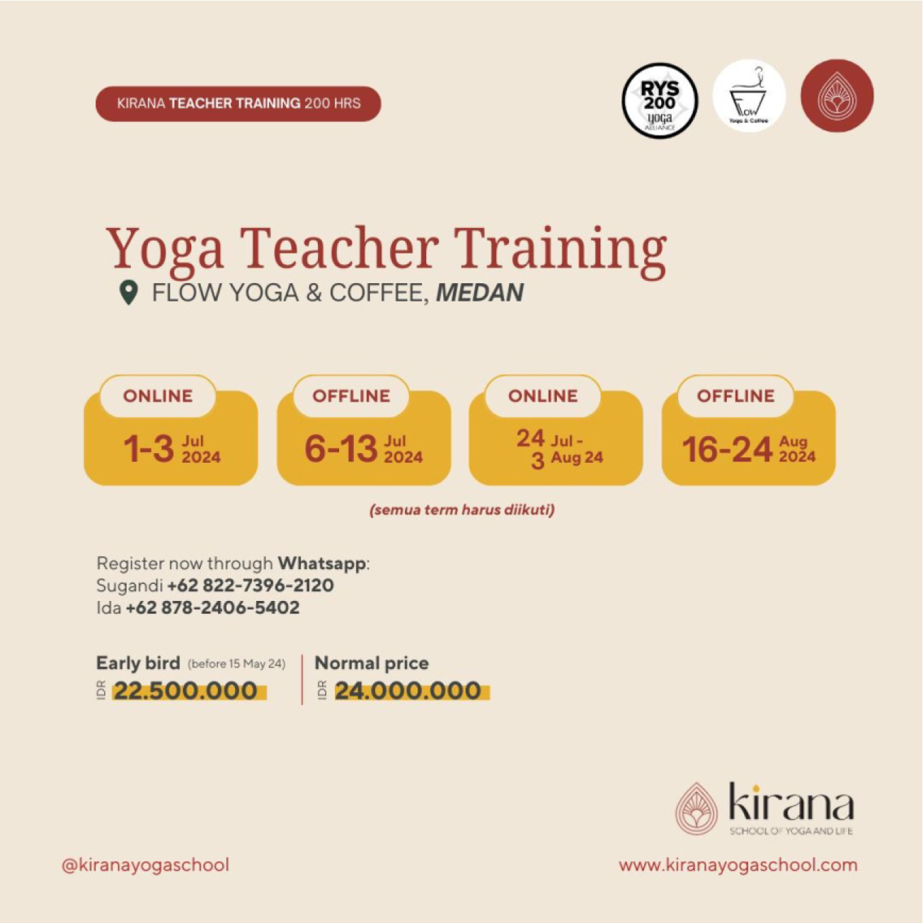 After completed the 193 hours from the 3 parts training, you will be still required to finish our homework which consist of observing classes and teaching practice. Once you completed your homework, you will be required to take the Written Test and record a video of you teaching a class, so we can see the progress in your teaching. When you pass the written test and we verify your video and qualification, we will issue KIRANA TEACHER CERTIFICATE. You can apply your RYT 200 directly to Yoga Alliance to get your own RYT registration number.